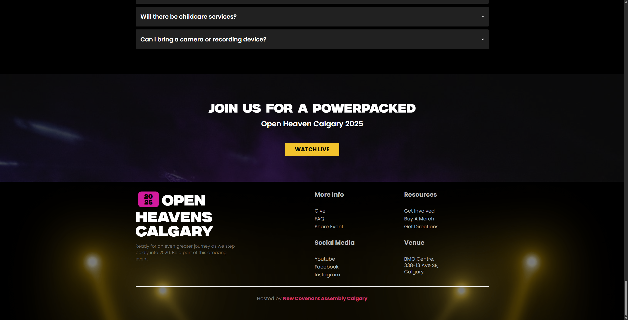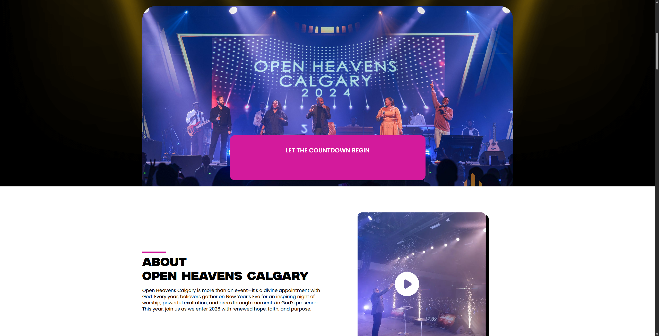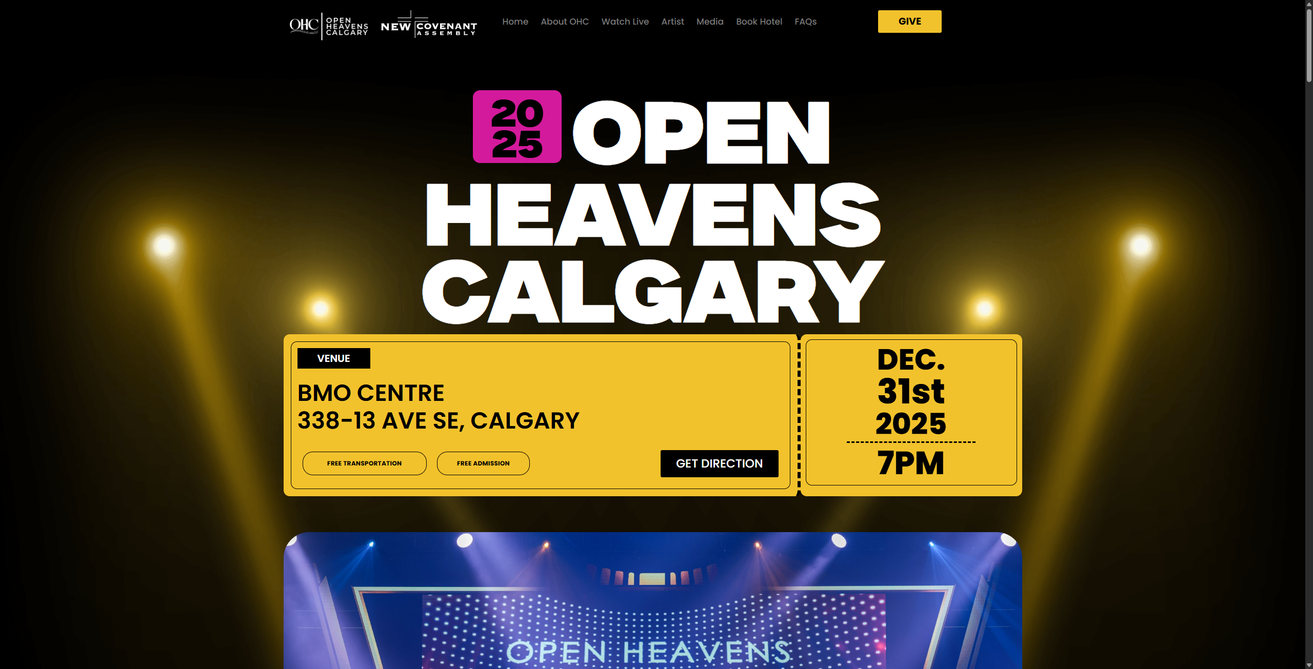 Open Heavens Calgary is a major annual worship and praise event organized by New Covenant Assembly, held at the BMO Centre in Calgary, Alberta. The event brings together thousands of attendees for a New Year’s Eve celebration featuring live performances from nationally and internationally recognized gospel artists alongside prayer, worship, and community gathering. Swash Digital designed and built the complete event website from concept to launch.