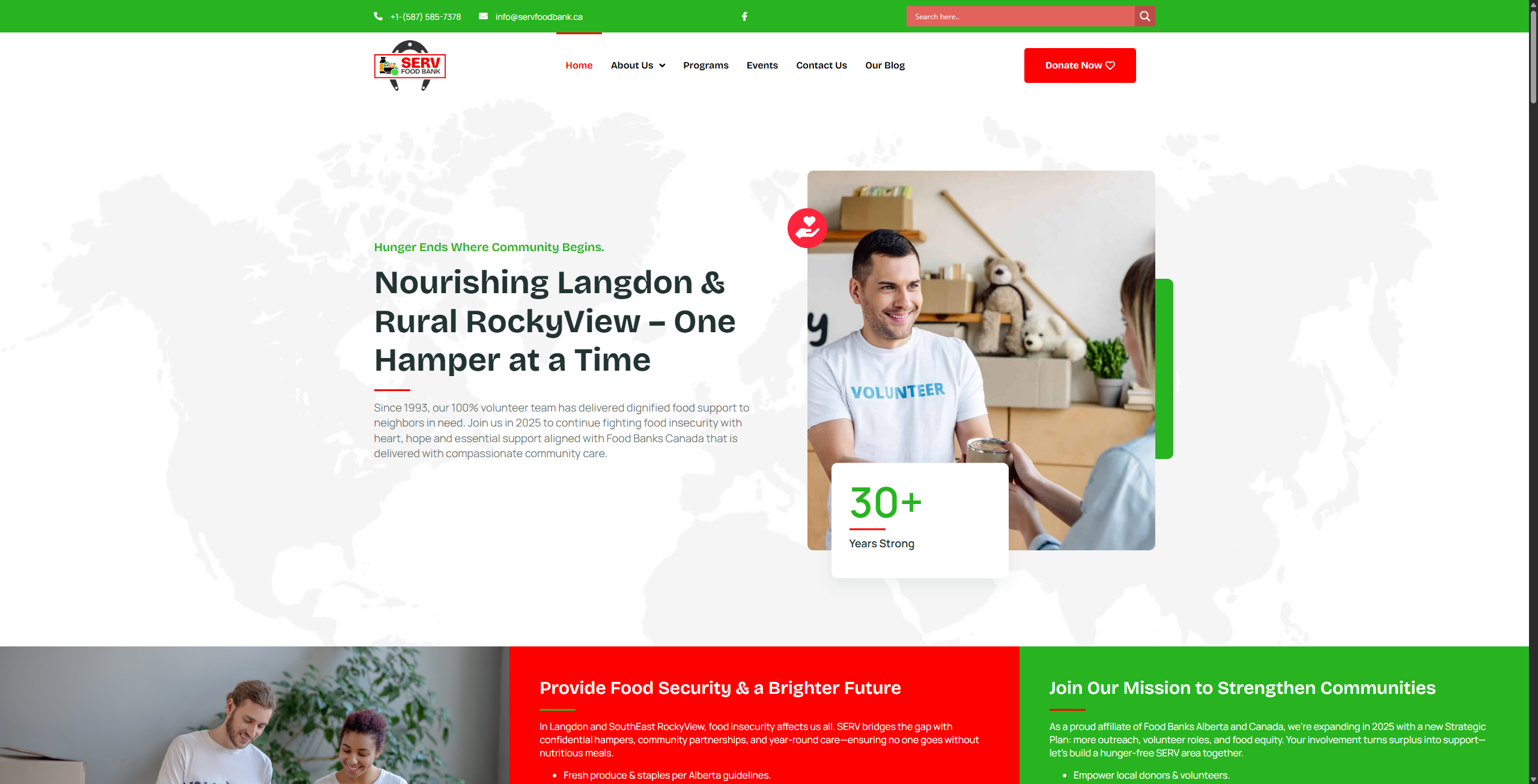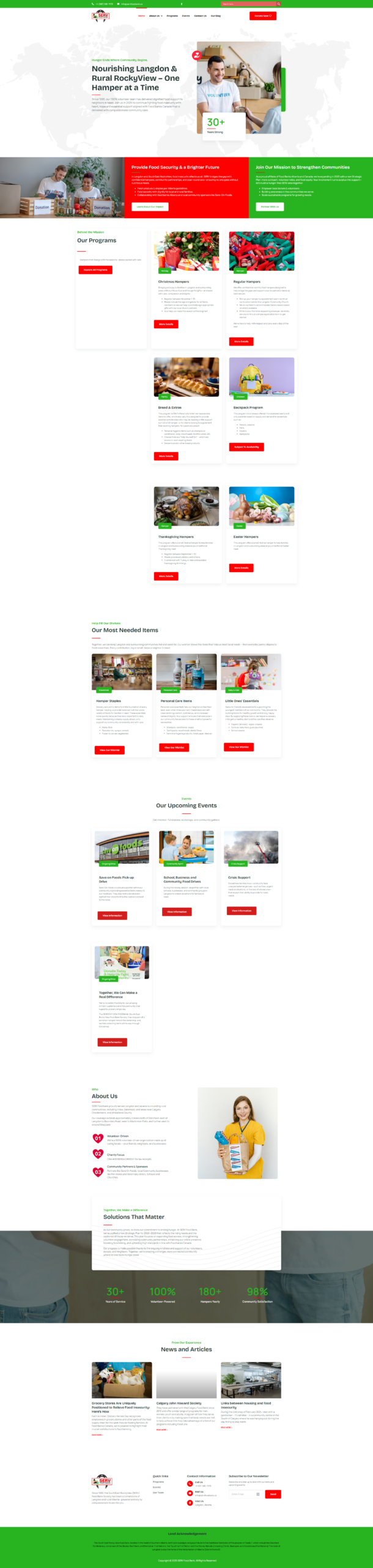 SERV Food Bank serves the Langdon and Rural RockyView area of Alberta, Canada. With over 30 years of community service, the organization provides food hampers, education programs, and family support to households facing food insecurity. SERV operates entirely on community donations and a dedicated volunteer base of 50+ active volunteers, currently serving 200+ families.