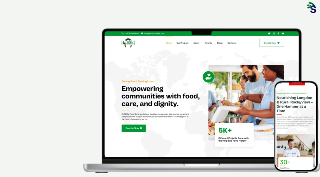 SERV’s existing digital presence did not reflect the scale or professionalism of their community impact. The organization needed a complete solution: a brand identity from scratch, and a public website that could effectively serve three distinct audiences — community members needing food support, potential volunteers, and donors. These three user journeys needed to coexist clearly without confusion.