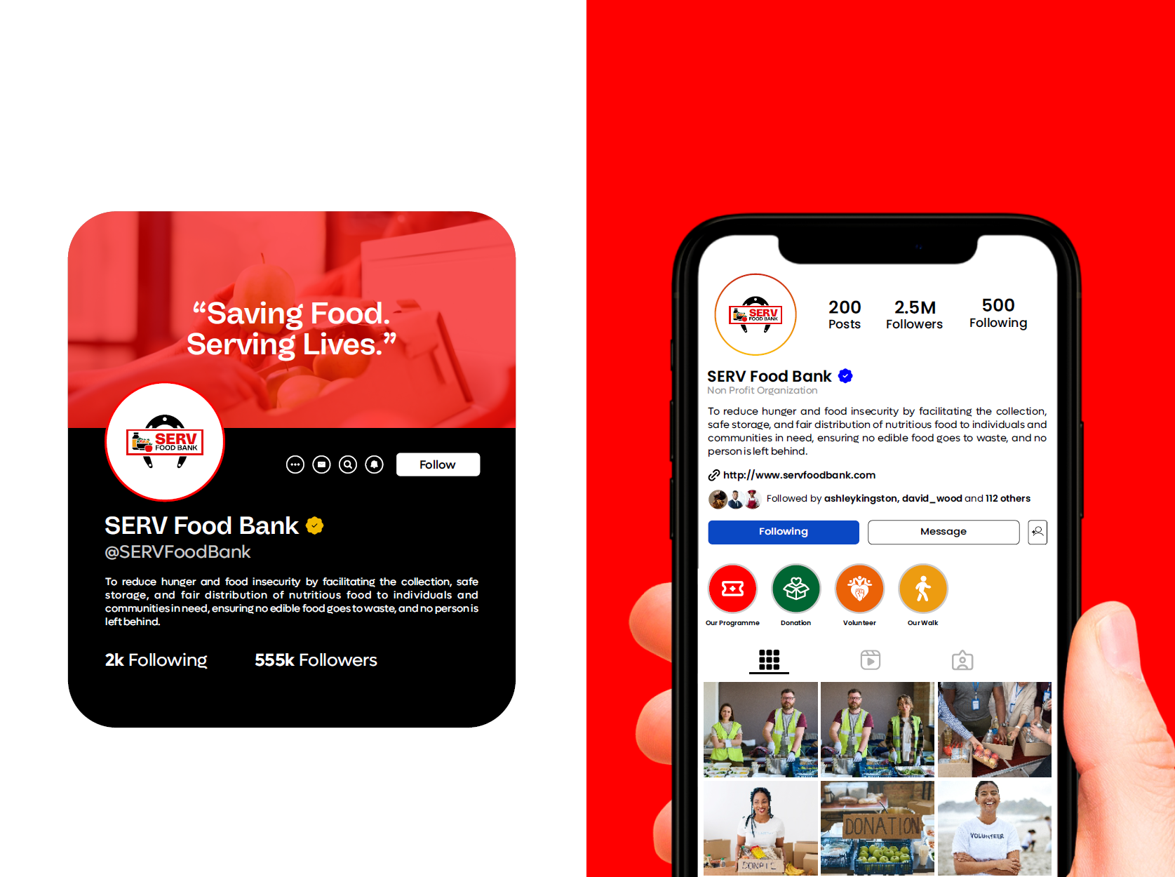 | ✓ Volunteer recruitment pathway | ✓ Upcoming events and food drives section |